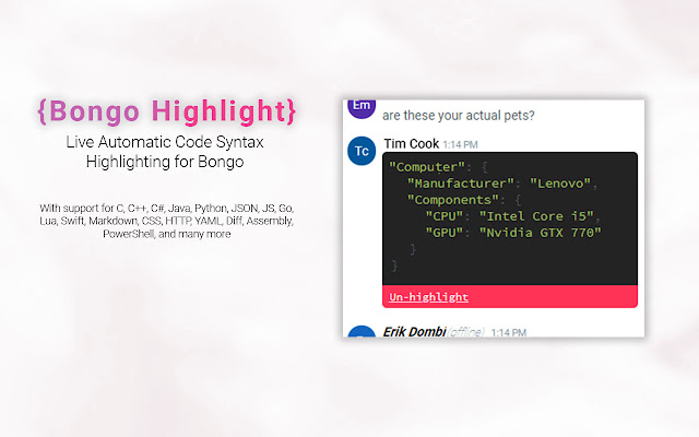 Various utilities for Bongo Chatrooms, including Code Syntax Highlighting, Emotes, and a Volume Slider!