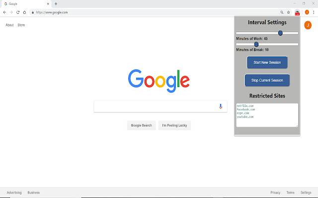 During periods of work, user-specified distracting websites are blocked while all other sites can be accessed in full.
