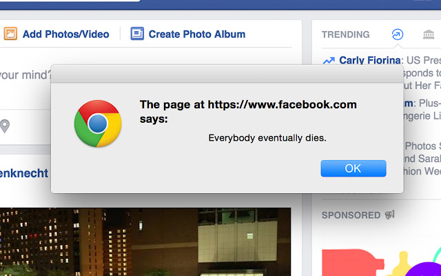 When you click on your own Status Updates or other people’s posts, he bluntly spits out insensitive facts like “Nobody is really special” and “Everyone eventually dies” to remind you to constantly check in with what’s real before getting sucked into the dreamland of “I wish life could be like this.