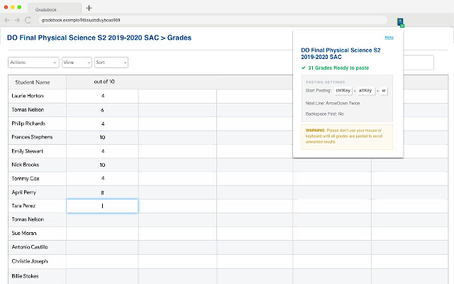 Gradebook Paste web extension integrated with the OffiDocs Chromium online