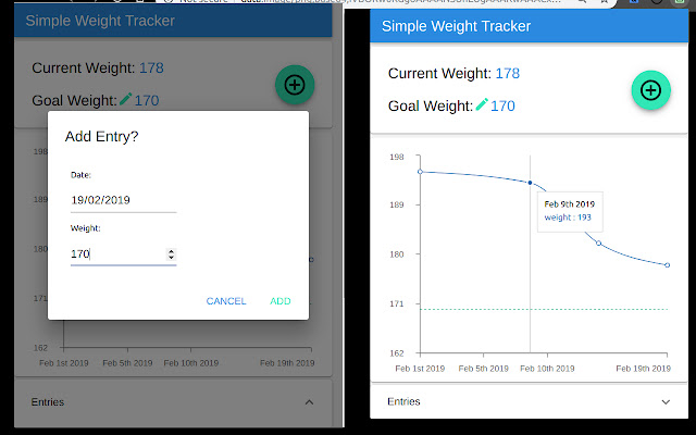 Weight Tracker web extension integrated with the OffiDocs Chromium online