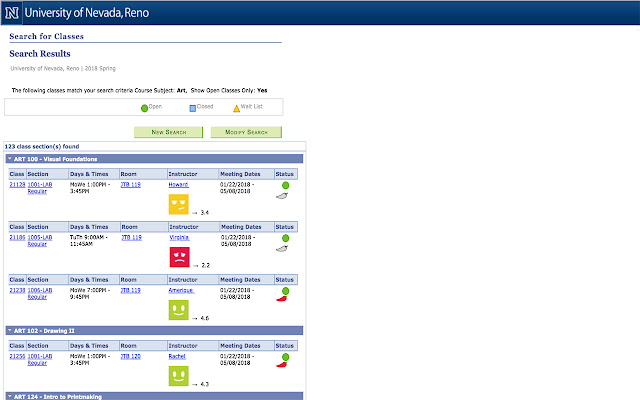 When searching for classes on MyNevada, ratings from Rate My Professors are shown right next to each professor's name.