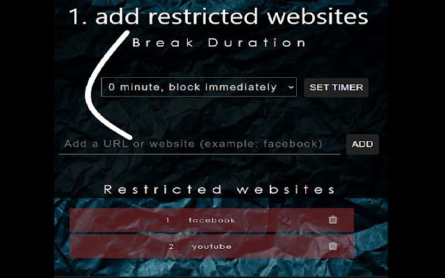 It allows you to enter a list of websites to be blocked when your break is over.