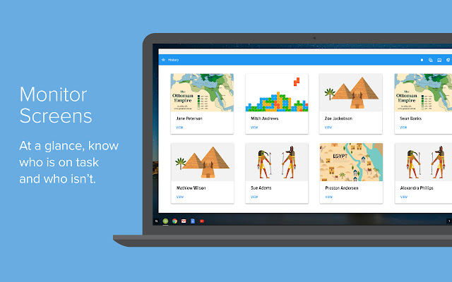 Vision for Chromebooks classroom management software provides visibility into all student activities, allowing teachers to see what their students see.