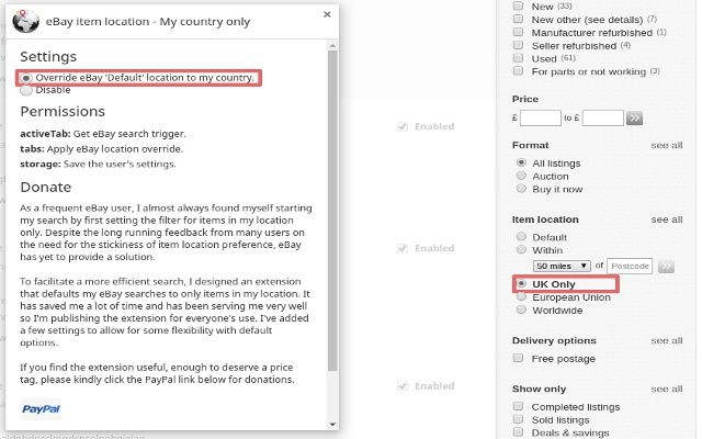 Set eBay default search parameters web extension integrated with the OffiDocs Chromium online