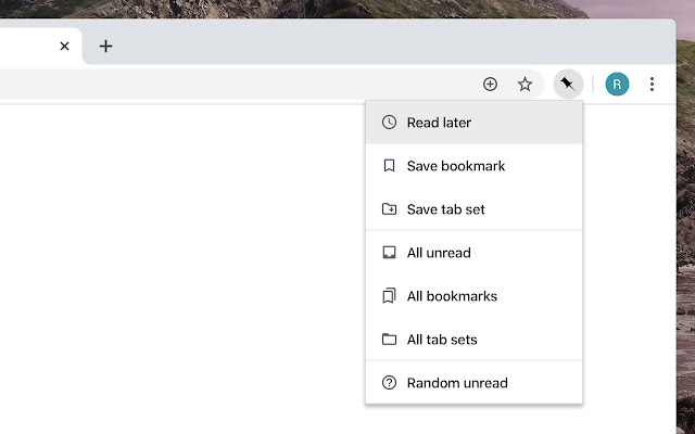 FEATURES: - Save bookmarks - Save for reading later - Save tab sets - Quick access to all your bookmarks, unread items or saved tab sets - Open random unread item - Dark mode - Selected text automatically copied to description field - Keyboard shortcuts (customizable) - Fully customizable menu - Does not store login information The "Save bookmark"-dialog uses the official popup which means you have accessto all your tags and tag suggestions.