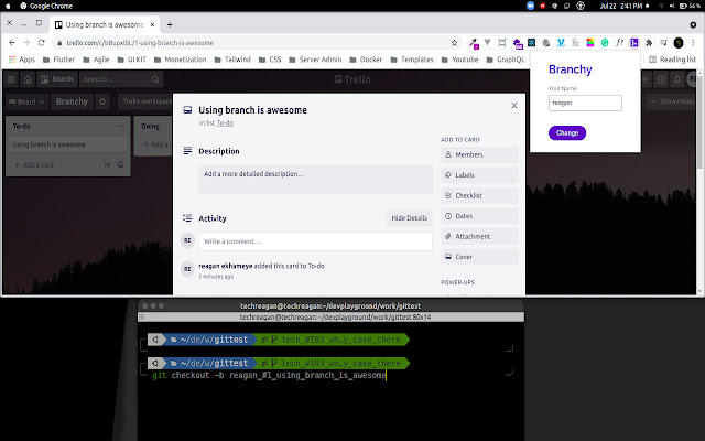 To get the card slug from trello current URL for developers to easily create a git branch from it.