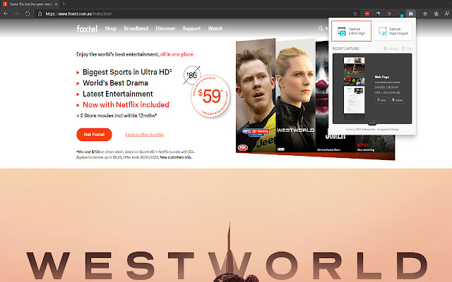 Click on the extension in your browser bar, select capture entire page or capture page snippet.