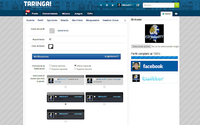 Lo que la extensión hace es cambiar el diseño de las notificaciones on board de Taringa!