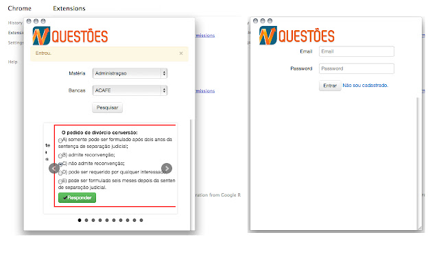 NQuestões  screen for extension Chrome web store in OffiDocs Chromium
