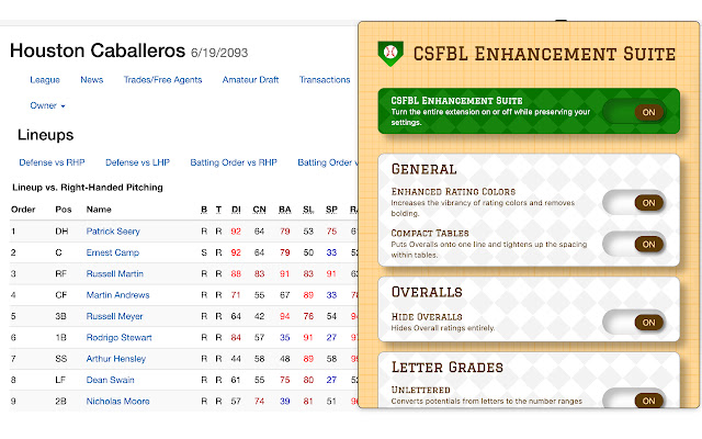 * Show / Hide Overall Ratings -- Choose whether or not to see overalls.