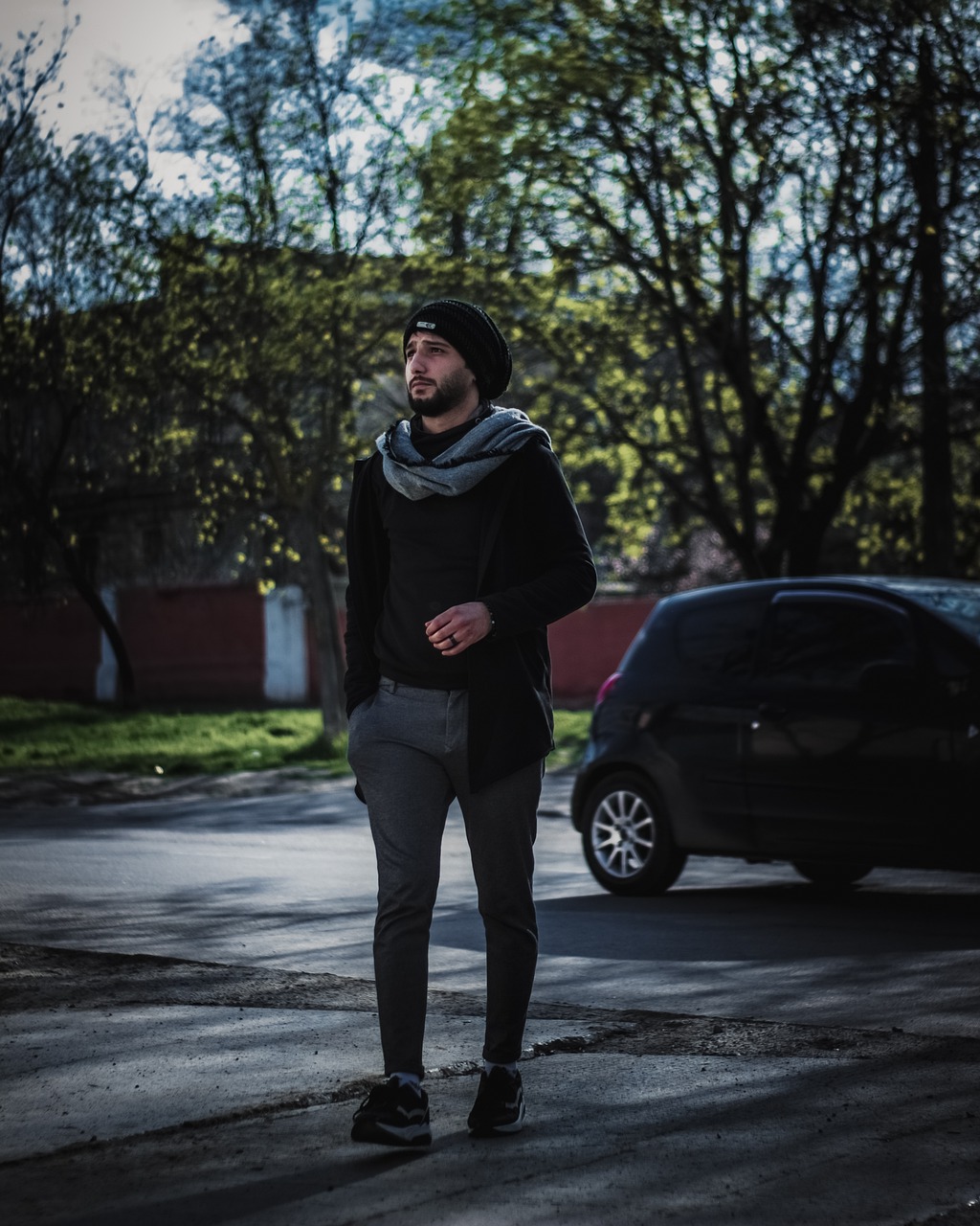 man model casual beard road