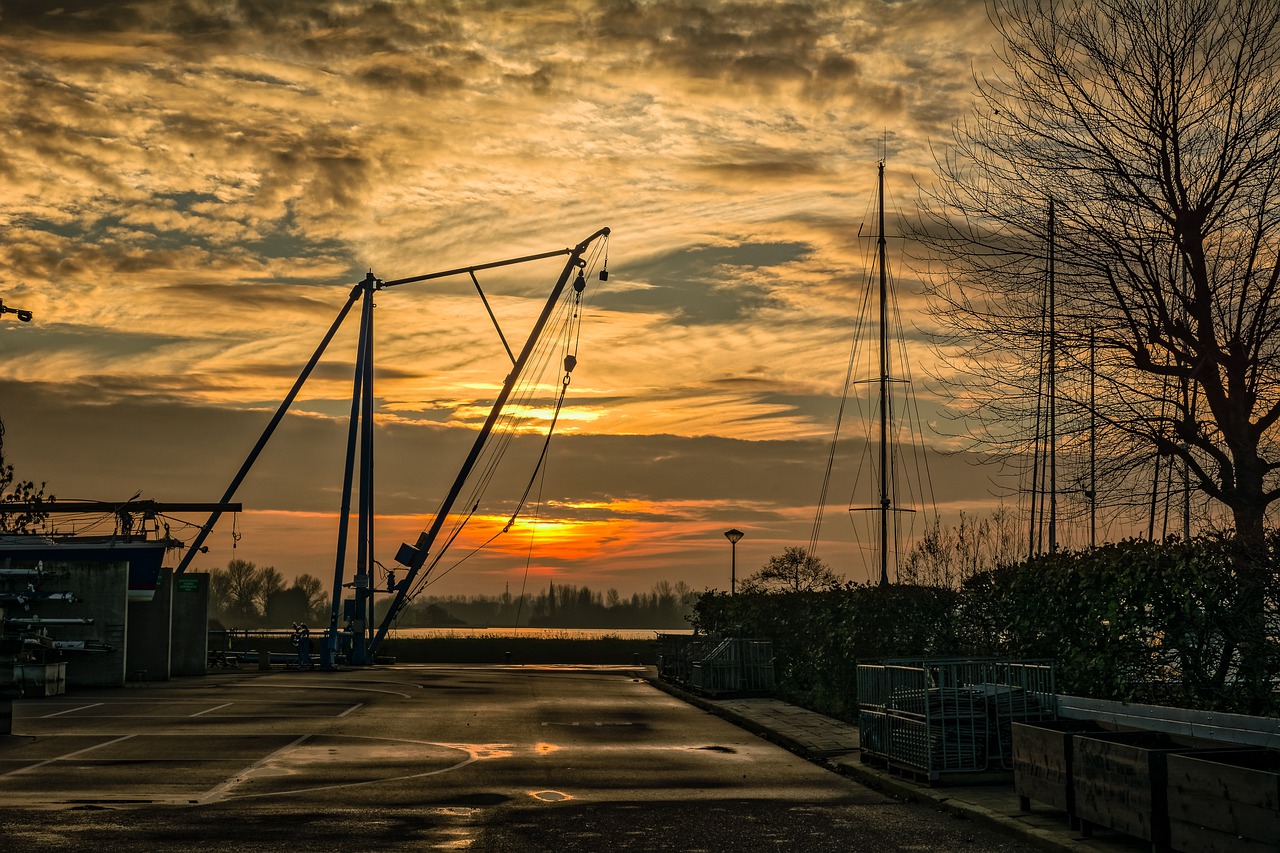 Download or edit the free picture clouds sunset crane port sun for GIMP online editor.