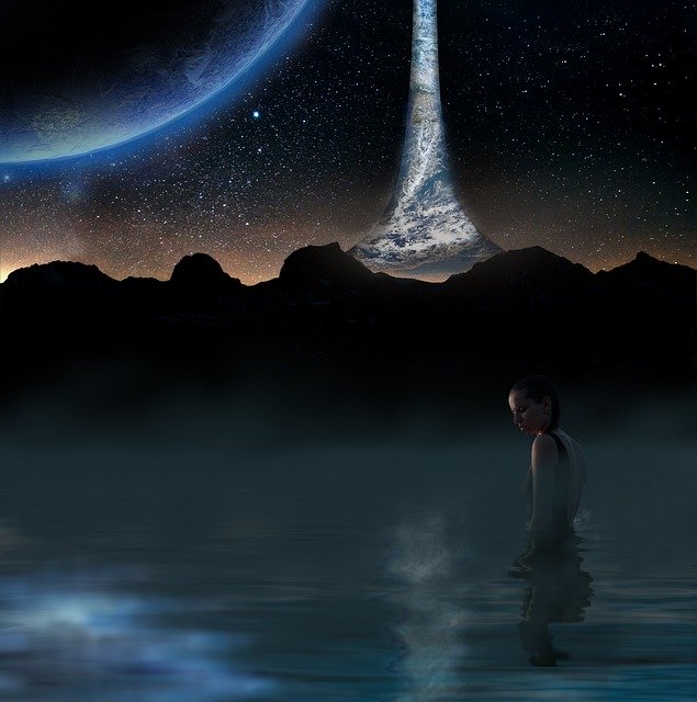 ring world, planet, woman, wonder, reflection, stars, universe, space, galaxy, cosmos, mist, water, mystery, sky, moon, mountains, snow, science fiction, scifi, Free photos,Free picture Ring World Planet Woman - integrated with the OffiDocs web apps