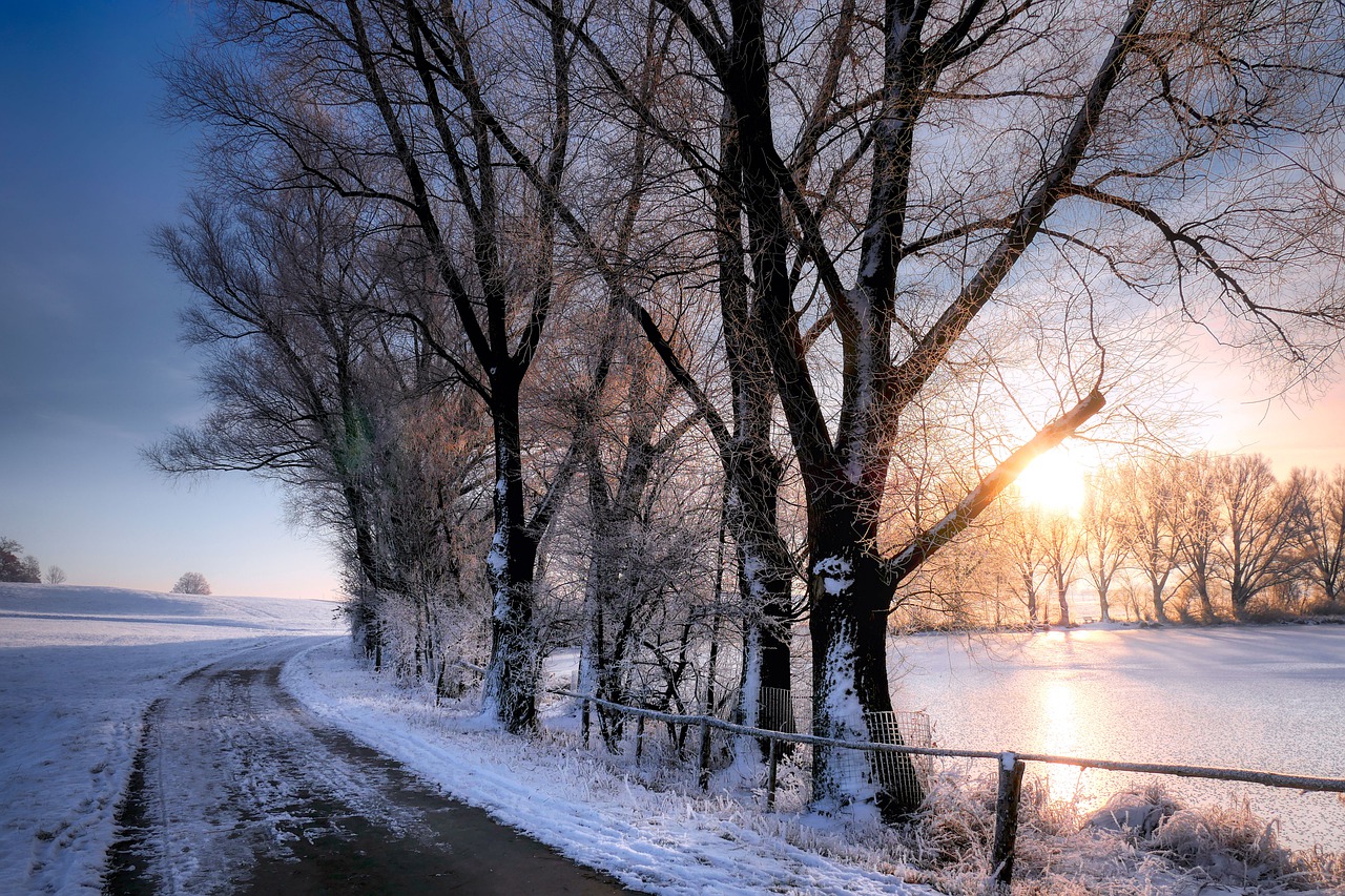This is the free picture / photo named lake pond road path snow trees for OffiDocs app Gimp online image or photo editor