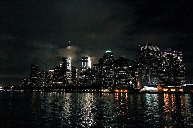 night, new york city, nyc, city, skyline, manhattan, cityscape, lights, river, architecture, water, buildings, america, skyscraper, evening, usa, tourism, panorama, new, york, Free photos,Free picture Night New York City Nyc - integrated with the OffiDocs web apps