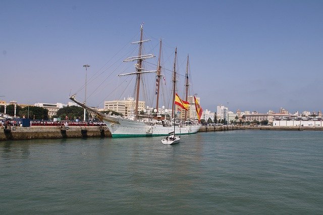 juan sebastian el cano, school ship, ship, military, marina, spain, cadiz, andalusia, port, sailboat, ocean, landscape, masts, Free photos,Free picture Juan Sebastian El Cano School Ship - integrated with the OffiDocs web apps
