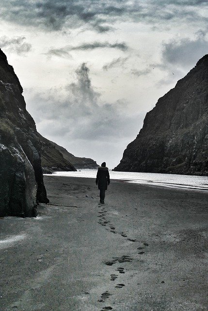 faroe islands, nordic, solitude, travel, lonely, adventure, freedom, hiking, outdoor, wilderness, scandinavia, environment, dramatic, clouds, dark, mood, footprints, sea, beach, Free photos,Free picture Faroe Islands Nordic Solitude - integrated with the OffiDocs web apps