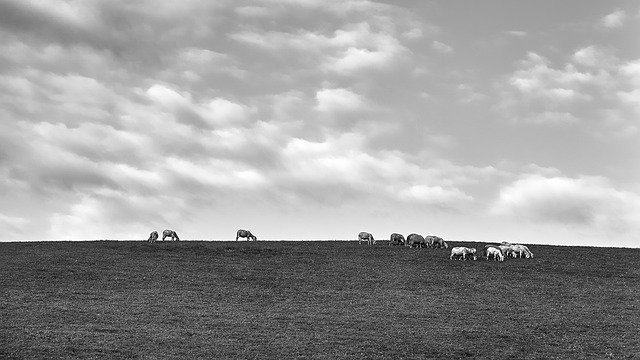 nature, agriculture, meadow, clouds, sheep, hill, hagertal, tyrol, black and white, landscape, field, sky, bio, Free photos,Free picture Nature Agriculture Meadow - integrated with the OffiDocs web apps