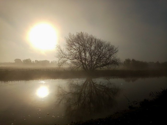 tree, single tree, mist, sunrise, riverbank, river grass, fog, landscape, haze, outdoors, morning, country, rural, dawn, scenic, mood, river, atmosphere, water, lake, atmospheric, fantasy, evening, romantic, Free photos,Free picture Tree Single Mist - integrated with the OffiDocs web apps