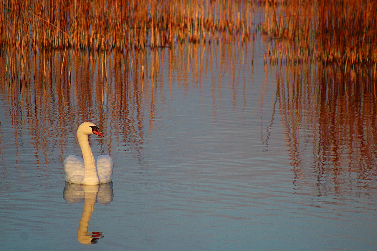 swan reed lake sunrise water bird