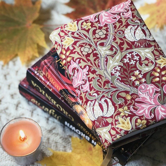 books, autumn, leaves, foliage, october, red, william morris, cosy, bookworm, mood, reading, hygge, Free photos,Free picture Books Autumn Leaves - integrated with the OffiDocs web apps