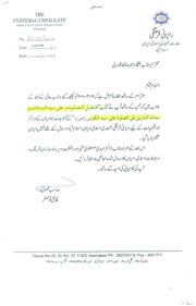 Acknowledgment Letter Upon Recieving Durood O Salam Books From Cultural Counsulate of Embassy of Iran