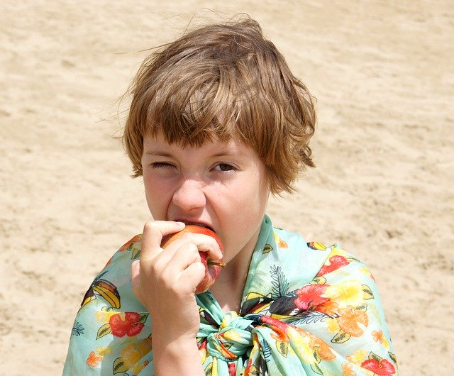 girl, apple, sand, beach, vacation, eating, shawl, baby, sun, Free photos,Free picture Girl Apple Sand - integrated with the OffiDocs web apps