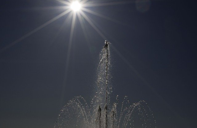 fountain, squirt, water, heatwave, heat, sky, sun, Free photos,Free picture Fountain Squirt Water - integrated with the OffiDocs web apps
