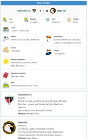 Ficha T\u00e9cnica Ferrovi\u00e1rio X Globo FC