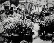 Public domain photo of flower sellers in Paris at the end of the nineteenth century that was altered with the Photoshop paintbrush, then the Topaz DeJPEG plug-in, then the Topaz DeNoise plug-in, then the Topaz Clarity plug-in (contrast boost edgy effect), then the Topaz Detail plug-in (feature enhancement effect), then the Topaz Clean plug-in (skin even effect), then the Topaz Clarity plug-in (macro effect), then the Topaz Impression in Studio plug-in (charcoal 1 stroke 11 set to solid), then the Photoshop paintbrush, then the Alien Skin Exposure X3 plug-in (vignette effect and crush blacks adjustment), then the Photoshop paintbrush (charcoal image), then the Topaz Impression plug-in (wispy sketch 3 stroke 14 effect; wispy sketch), then the charcoal image was overlaid and merged with the wispy sketch image, then FotoSketcher (oil pastel effect), then the Photoshop paintbrush, then the Alien Skin Exposure X3 plug-in (central clarity effect), then the Topaz Clarity plug-in (contrast boost edgy effect), then the Topaz Clean plug-in (edge boost effect), then the Photoshop paintbrush, then the Topaz Clarity in Studio plug-in (detailed architecture effect), then the Topaz Detail in Studio plug-in (micro contrast enhancement effect), and then the Alien Skin Exposure X3 plug-in (dodging). 8 x 10 in. Public domain image courtesy of Rijksmuseum.Free picture Digital Charcoal Drawing of Flower Sellers in Paris integrated with the OffiDocs web apps