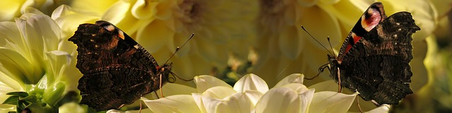 peacock butterfly, butterfly, banner, dahlia, yellow, yellow flower, butterflies, nature, Free photos, Free Images.Free download template Peacock Butterfly Banner integrated with the OffiDocs web apps
