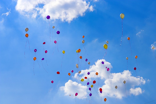 ballon, birthday, balloons, flying, air, sky, fun, color, ballooning, funny, children, celebrate, play, playful, sunnyday, cloud, nature, Free photos,Free picture Ballon Birthday Balloons - integrated with the OffiDocs web apps