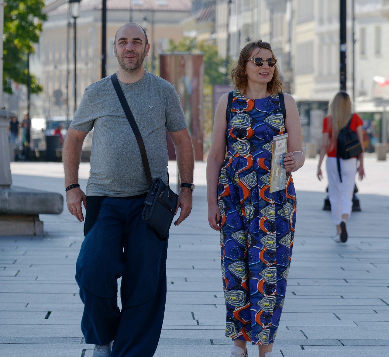 couple walking outdoors pavement