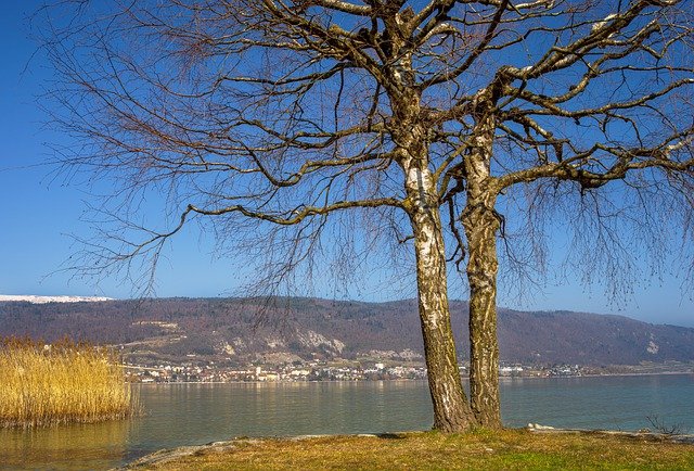 beach lake birch reed tree nature