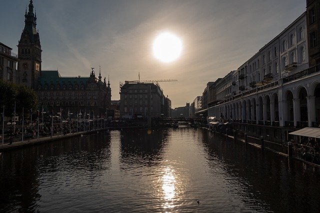 hamburg, town hall, sunset, germany, architecture, building, hanseatic city, travel, city, tourism, water, Free photos,