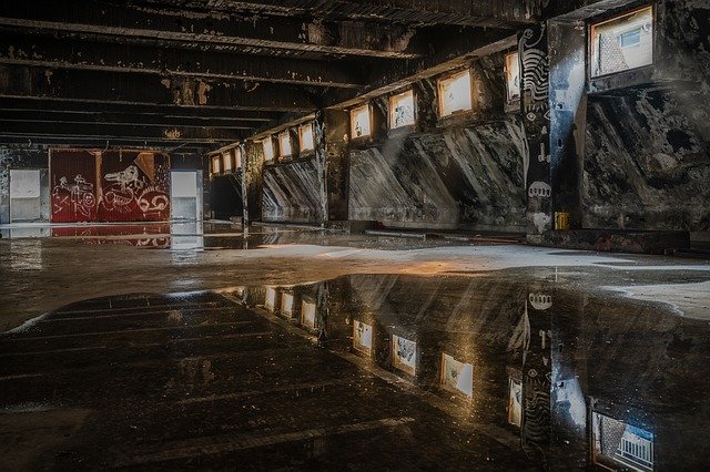 spieglung, grey, abandoned building, decay, abandoned, old, dirty, shadow, dust, gloomy, factory building, building, mystical, forget, ailing, wet, water, Free photos,Free picture Spieglung Grey Abandoned Building - integrated with the OffiDocs web apps