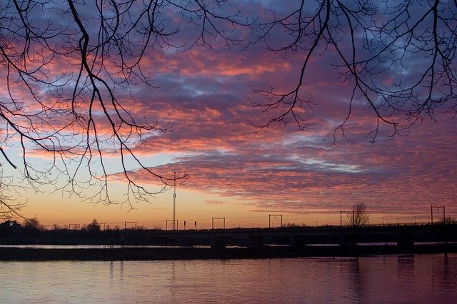 sunset, river, bridge, railway line, landscape, water, twilight, reflection, Free photos,Free picture Sunset River Bridge Railway - integrated with the OffiDocs web apps
