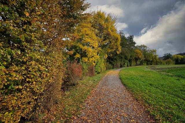 autumn, away, lane, nature, landscape, trees, mood, autumn mood, fall foliage, trail, leaves, fall color, rest, clouds, meadow, grass, color, colorful, Free photos,Free picture Autumn Away Lane - integrated with the OffiDocs web apps