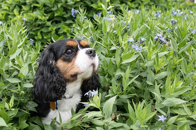 dog, cavalier, flower, plant, cute, pet, spaniel, sitting, king, charles, looking, tricolor, Free photos,Free picture Dog Cavalier Flower - integrated with the OffiDocs web apps