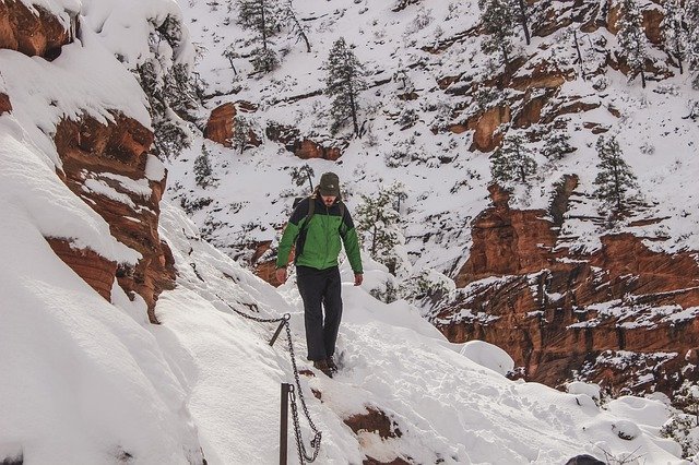 zion, angels landing, snow, winter, hiker, climber, danger, Free photos,Free picture Zion Angels Landing Snow - integrated with the OffiDocs web apps